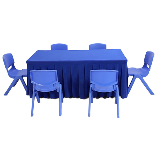 Categories: Kids Party Rental,Sedra Rectangular Kids Table with Blue Skirt Cover